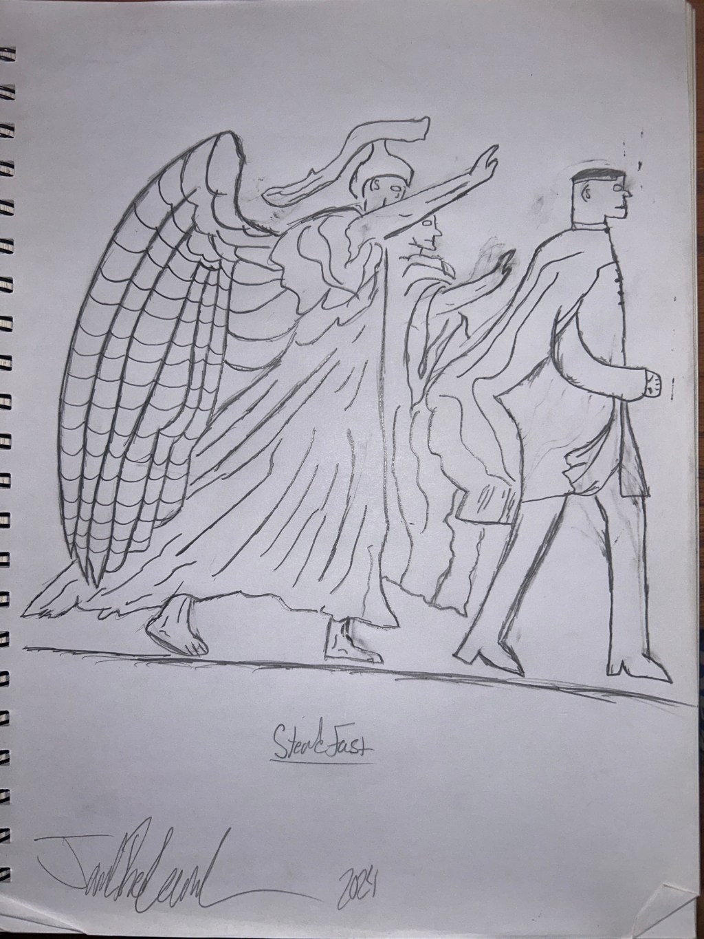 I have been an artist for the majority of my life. A passion of mine is to convert my sketches or paintings into clothes for fashion. I love the concept of wearing designs I have created. In the past, I have sold merchandise to fund the operations of my podcast while simultaneously creating a culture and vibe for my brand. Much of my art is of either statues, animals, or landscapes reimagined and brought to life.